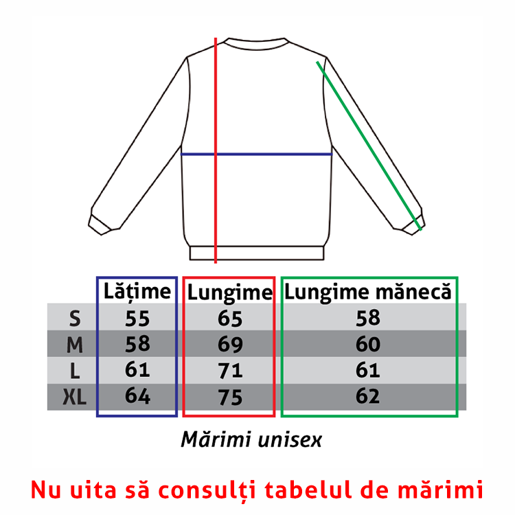 195,00 leiSweatshirt-urile INKPRIM sunt căldurose, confortabile și moderne. Gulerul este rotund, nu au buzunare sau fermoar, la gât, manșete și talie, sweatshirt-urile sunt prevăzute cu o bandă din bumbac. Gramaj: 280 gr. Printul este realizat prin termo-transfer.INSTRUCȚIUNI DE UTILIZARE: – Sweatshirt-ul se spală pe dos, la maxim 30˚C-40˚C. – A se călca pe dos, a nu se călca direct pe imprimeu. TABEL MĂRIMI: Pentru a ne asigura […]